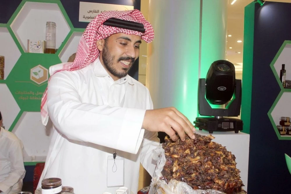 Saleh Hamdan showcases one of the finest types of dates at the Agricultural Products Festival, organized by the branch of the Ministry of Environment, Water, and Agriculture in Tabuk. (Photo: Ali Bdeir)