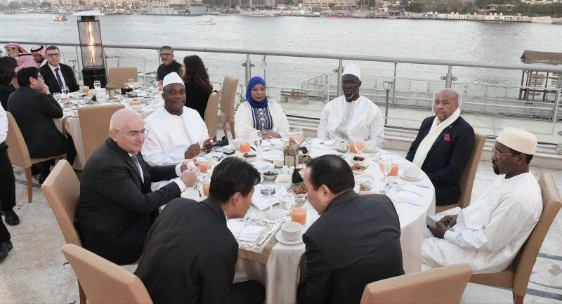 The Iftar was attended by the Egyptian Minister of Electricity and Renewable Energy, Engineer Mahmoud Asmat, the Minister of Parliamentary Affairs, Legal Affairs, and Political Communication, Counselor Hani Hanna, the Minister of State for Military Production, Dr. Salah Suleiman, the Deputy of Al-Azhar, Dr. Muhammad Al-Dawini, the Grand Mufti of Egypt, Dr. Nazih Iyad, Bishop Marcus, and heads of accredited diplomatic missions and members of the diplomatic corps.
