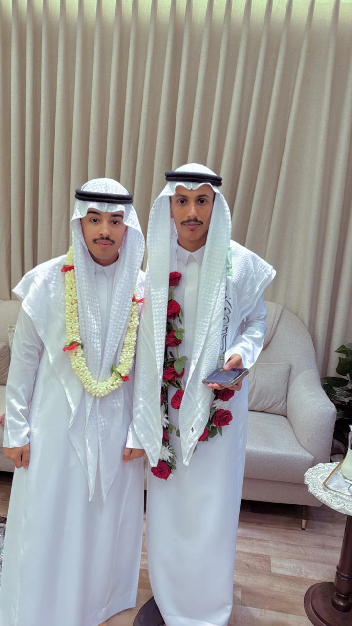 On an evening titled with joy, happiness, and delight, filled with warmth and love, Ahmad Jamah celebrated the marriage contract of his son Abdullah to the daughter of Abdulrahman Mohammed Arishi, in the presence of family, relatives, friends, and colleagues, who offered their congratulations and best wishes, wishing them a happy married life.