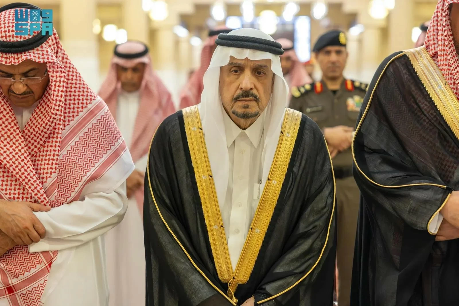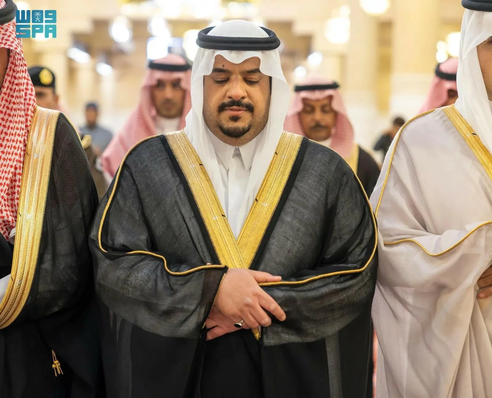 The Governor of Riyadh, Prince Faisal bin Bandar bin Abdulaziz, and the Deputy Governor of the region, Prince Mohammed bin Abdulrahman bin Abdulaziz, performed the funeral prayer today (Tuesday) after the Asr prayer for Prince Mohammed bin Faisal bin Mohammed bin Saad bin Mohammed bin Saud bin Abdulrahman Al Saud - may God have mercy on him - at Imam Turki bin Abdullah Mosque in Riyadh.