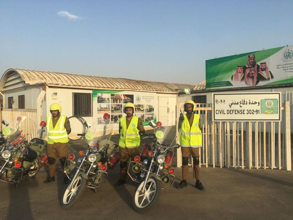 من جانبه، أوضح قائد ركن الحماية المدنية بعرفات العقيد ماجد الموزان أن رجال الدفاع المدني وفروا كافة المستلزمات بمعسكرات الإيواء وتجهيز خطط الإخلاء الطبي في حالات الطوارئ، كما تم تحديد المربعات المنخفضة عن منسوب الطرق الرئيسية وتعريف فرق الإخلاء بها بالتنسيق مع مؤسسات الحج والطوافة التي تتواجد مخيماتها في تلك المربعات، فضلا عن التواصل المباشر على مدار الساعة بهيئة الأرصاد لمتابعة كافة المتغيرات المناخية بمنطقة عرفة لاتخاذ إجراءات الحماية من المخاطر المرتبطة بالتغيرات المناخية، وعمل الدفاع المدني على إجراء مسح كامل لمشعر عرفة والأودية والعبارات وشبكات تصريف مياه السيول وإزالة أي عوائق تعوق انسياب المياه. وأوضح قائد ركن الإطفاء بمشعر عرفات المقدم تركي أحمد الحصيني أن مهمات الركن تتمحور في الجاهزية الجيدة، في جوانب المعدات والآليات على اختلاف أنواعها وأسبابها.