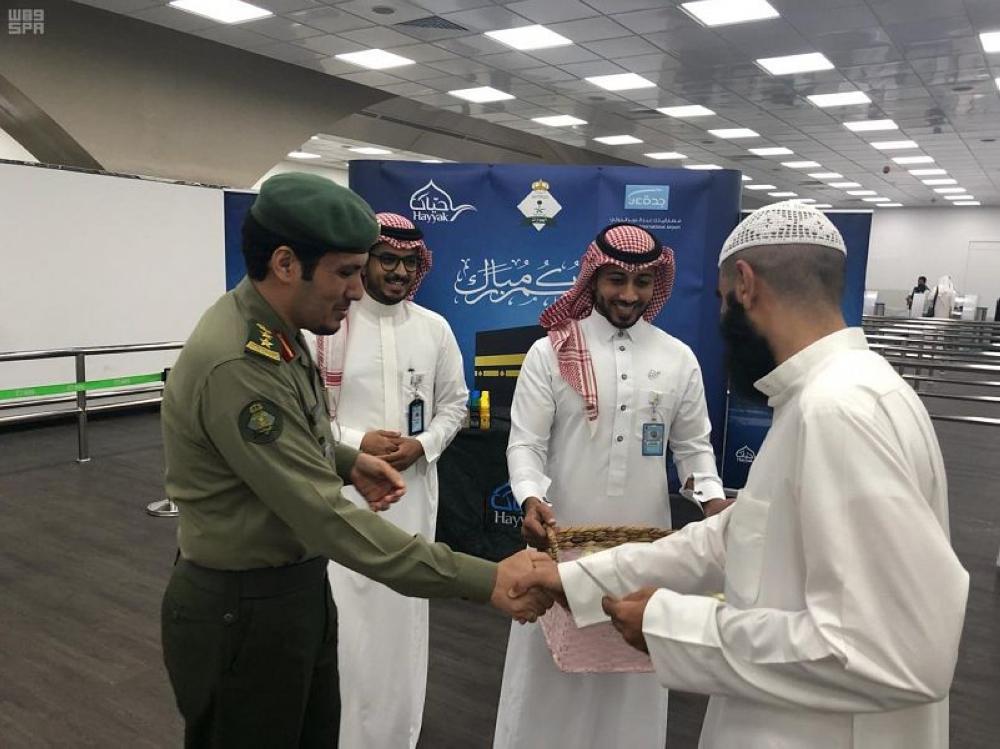 يذكر أن جوازات مطار الملك عبدالعزيز الدولي وبالتعاون مع الشريك الاستراتيجي للجوازات ( شركة علم لأمن المعلومات ) قد ودعت أولى رحلات الحجاج المغادرين بالهدايا والورود.