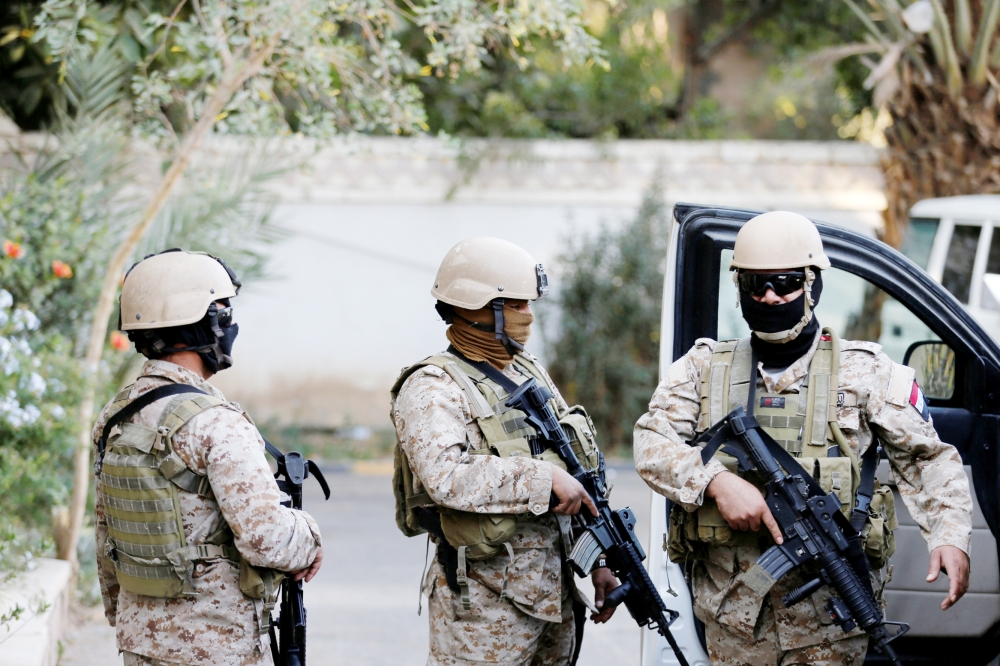 جنود حراسة مطار صنعاء قبل وصول مبعوث الأمم المتحدة إلى اليمن إسماعيل ولد الشيخ. (رويترز)