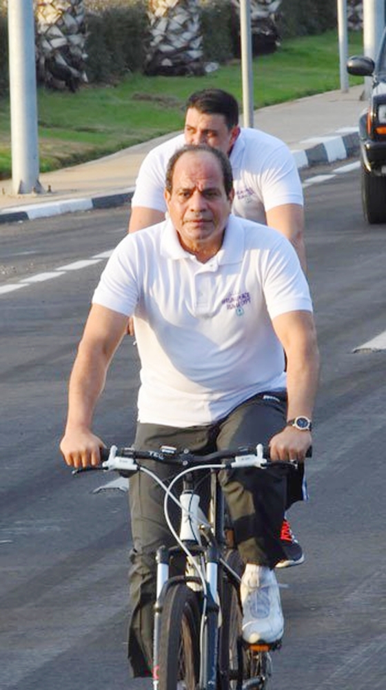 السيسي يمارس رياضته المفضلة بالدراجة في شرم الشيخ. (أ.ف.ب)