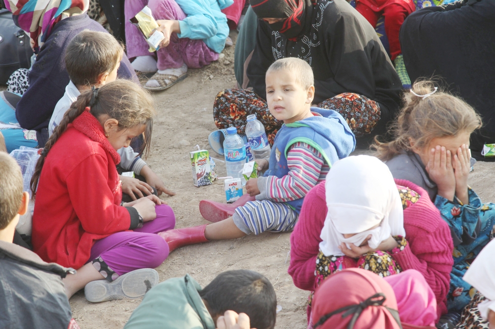 لاجئون عراقيون هاربون من الموصل في أحد المراكز خارج المدينة. (أ.ف.ب)