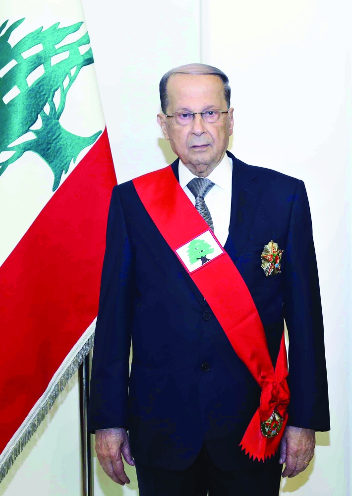 عون في قصر بعبدا عقب انتخابه رئيسا. (أ ب)