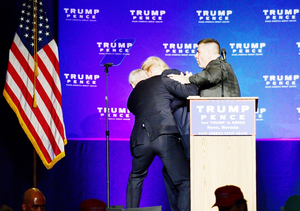 هرع رجال أمن لإنزال المرشح الجمهوري في انتخابات الرئاسة الأمريكية ترامب أمس (الأحد) من على منصة خلال تجمع انتخابي في رينو بولاية نيفادا بعد تهديد كاذب عندما صاح شخص قائلا «مسدس» خلال مشاجرة مع محتج كان يرفع لافتة كتب عليها «جمهوريون ضد ترامب». وقعت الحادثة بينما يجوب ترامب ومنافسته كلينتون أنحاء الولايات المتحدة في مسعى أخير للفوز بأصوات الناخبين الذين لم يحسموا أمرهم بعد والتأكد من أن أنصارهما سيتدفقون بحماس على مراكز الاقتراع يوم الانتخابات. وأمسك رجلا أمن ترامب من كتفيه ودفعاه إلى خارج المنصة، فيما اندفع رجال الشرطة صوب رجل يقف في مقدمة الحشد وطرحوه أرضا وقاموا بتفتيشه قبل أن يقتادوه بعيدا.