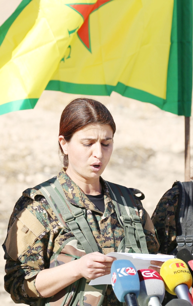 جيهان أحمد المتحدثة باسم قوات سورية الديموقراطية تعلن انطلاق تحرير الرقة أمس. (أ. ف. ب)