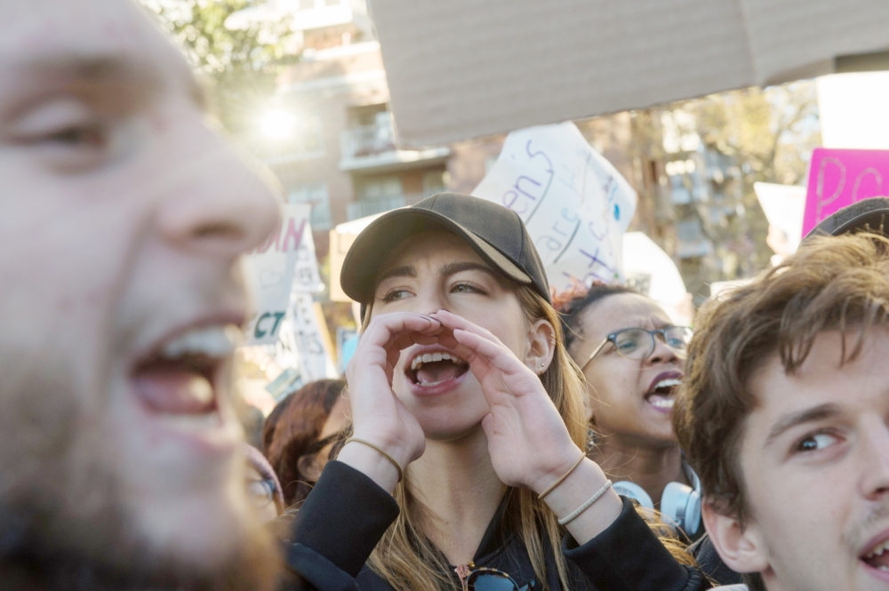 قالت كيم باير (41 عاما): نحن هنا لدعم كل الذين أهانهم، ولنثبت لأطفالنا أن لنا صوتا، وللدفاع عن حقوق الإنسان.