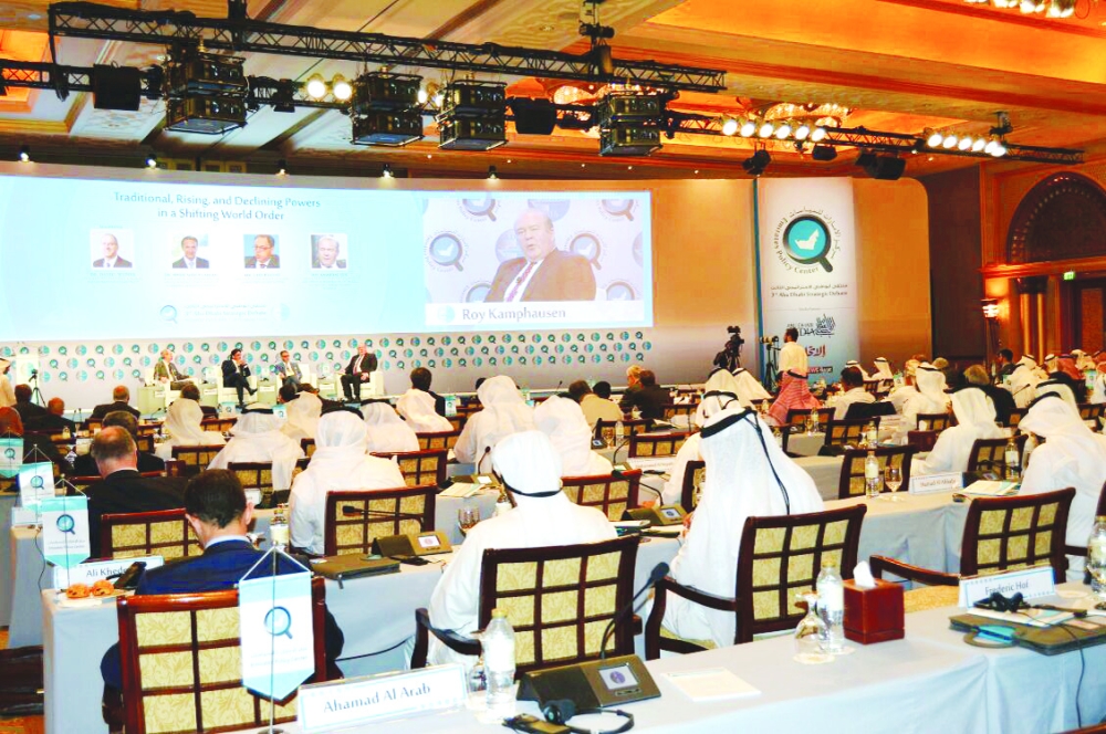إحدى جلسات ملتقى أبوظبي الإستراتيجي. (عكاظ)