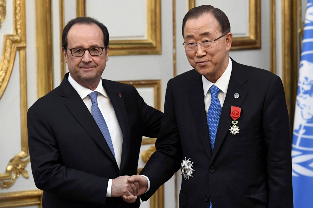هولاند يمنح بان كي مون وسام جوقة الشرف الفرنسي