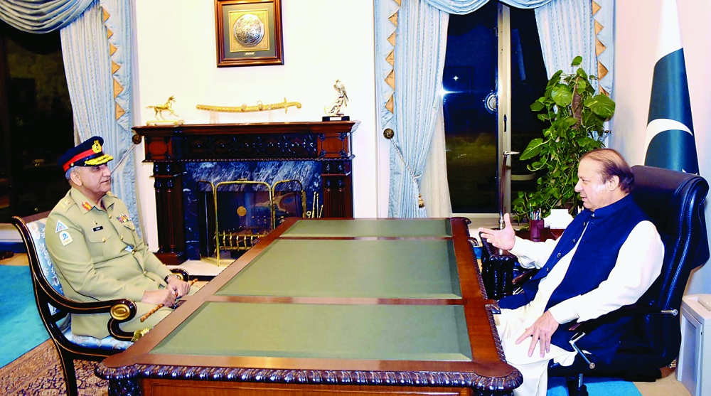 رئيس الوزراء الباكستاني في أول لقاء مع باجوا بعد تعيينه قائدا للجيش. (أ. ف. ب)