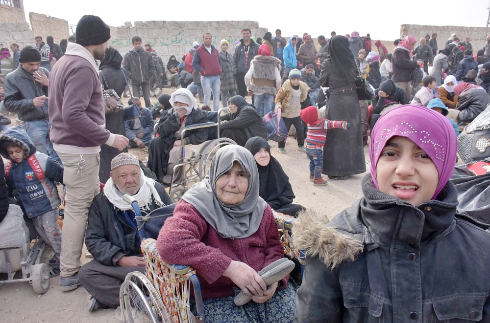 أسر سورية فارة من شرق حلب. (أ.ف.ب)