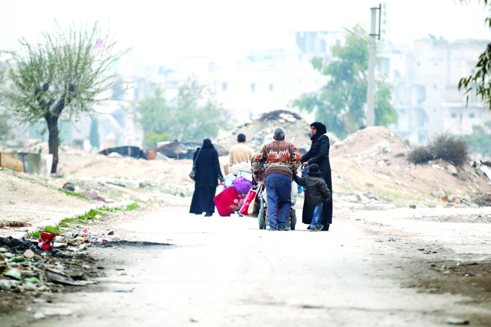 عائلة سورية تنزح من أحياء حلب الشرقية، إثر تهديد روسيا باستئناف الإبادة. (أ. ف. ب)
