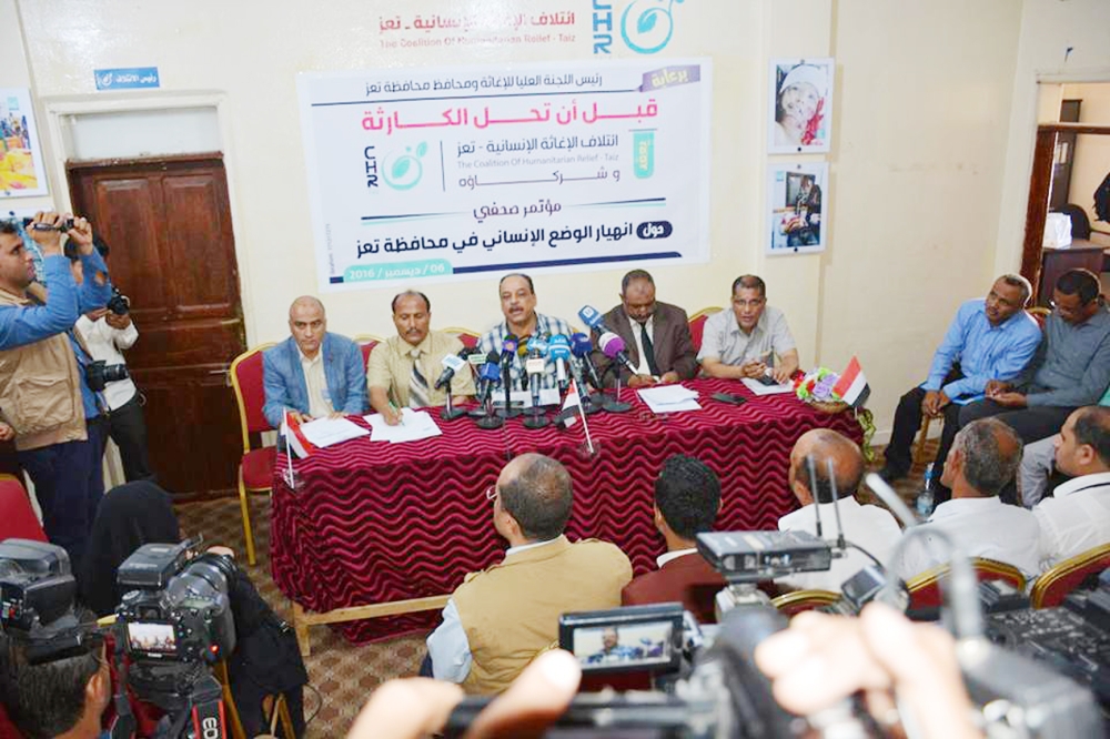 مؤتمر صفحي لإئتلاف الإغاثة في تعز .(عكاظ)