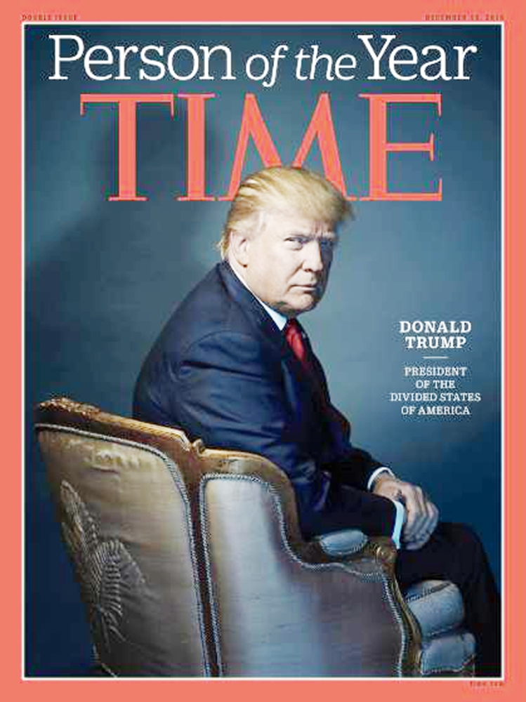 اختارت مجلة تايم الأمريكية أمس (الأربعاء) دونالد ترمب «شخصية العام» 2016 لفوزه المفاجئ في الانتخابات الرئاسية الأمريكية الذي أعاد كتابة قواعد السياسة في أمريكا المقسمة.