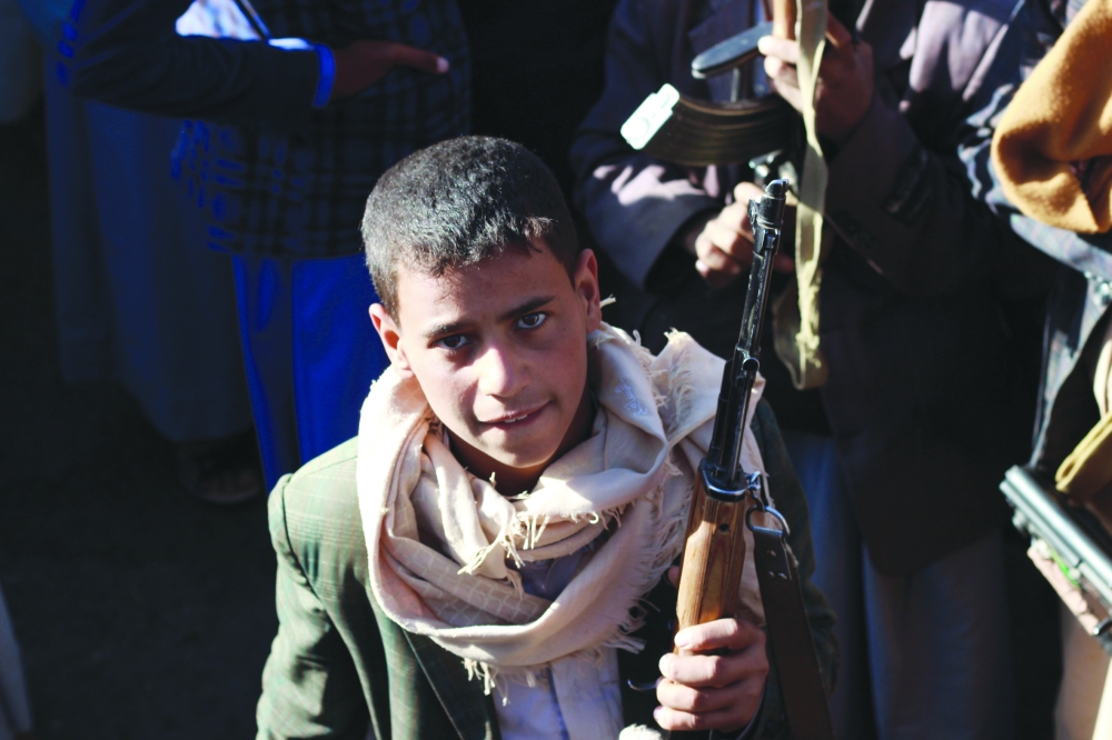 طفل جندته ميليشيا الانقلاب في صنعاء للزج به على جبهات القتال. (أ. ف. ب)
