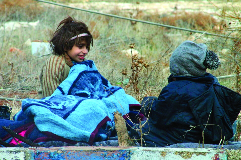 أطفال ينتظرون الإجلاء من حلب أمس. (أ.ف.ب)