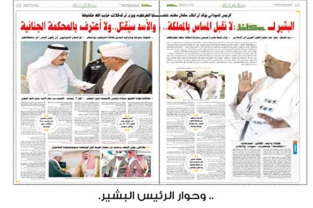 حتى ليبيا التي تخوض صراعا مريرا، سلطت «عكاظ» الضوء على تفاعلات الأوضاع السياسية والعسكرية هناك بحوار رئيس حكومة الوفاق الوطني فايز السراج، ورئيس البرلمان عقيلة صالح. فيما كان الحوار مع الرئيس السوداني عمر البشير في غاية الأهمية نتيجة التحولات السياسية في السودان. أما حوار رئيسة الوزراء النبغلاديشية الشيخة حسينة جاء خلال توقيت زيارتها للسعودية، إذ تحدثت عن عدد من القضايا المهمة من أبرزها ملف الإرهاب وداعش. وفي إطار التوثيق الخليجي أيضا، حاورت «عكاظ» وزير الخارجية الإماراتي السابق راشد عبدالله النعيمي، في لقاء الذكريات، إذ تحدث عن تجربته الثرية في المحيط الخليجي. فيما كان حوار المفاجآت مع مدير شرطة دبي السابق ضاحي خلفان، لتكون «عكاظ» المنبر الموثوق بها سياسيا، الذي يقدم الحدث من صناع القرار.