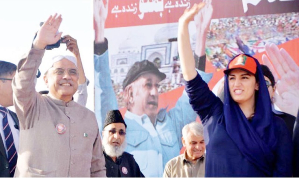 زرداري مع ابنته في إحدى الحملات الانتخابية السابقة. (عكاظ)