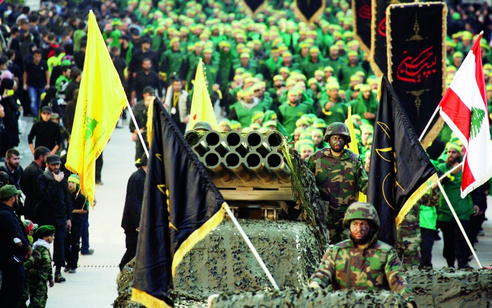 حزب الله يستعرض الأسلحة الإيرانية في الضاحية الجنوبية في لبنان.(أ.ف.ب)