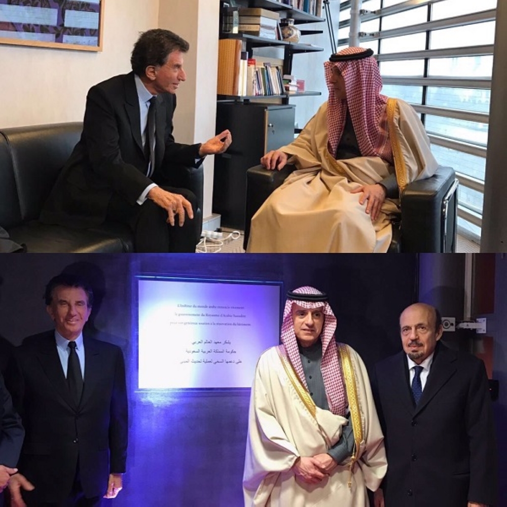 من جهة ثانية زار الوزير الجبير على هامش زيارته لجمهورية فرنسا أمس معهد العالم العربي في باريس، حيث كان في استقباله رئيس المعهد جاك لانغ.