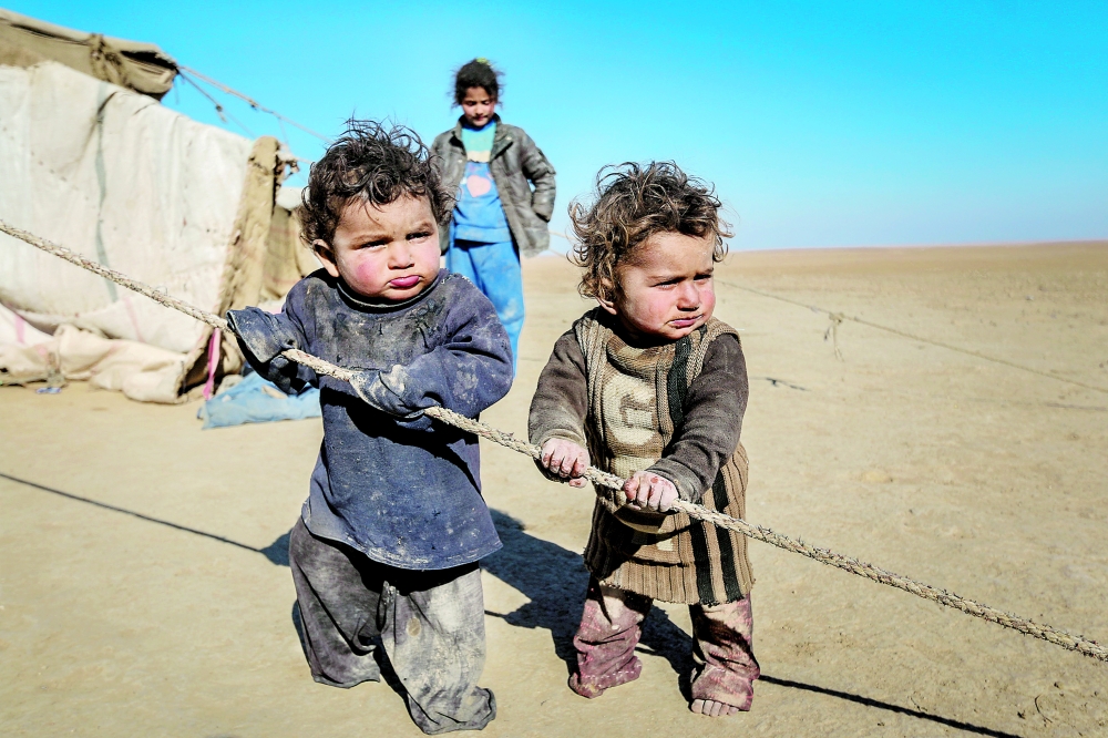 FILE PHOTO: Internally displaced Syrian children who fled Raqqa city stand near their tent in Ras al-Ain province, Syria January 22, 2017. REUTERS/Rodi Said/File Photo