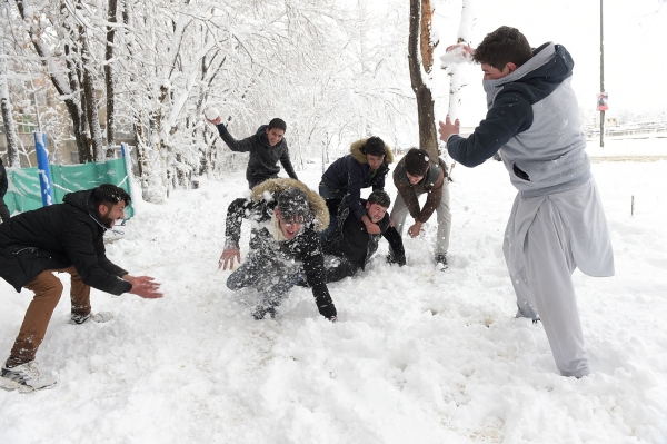 أفغان يلهون بالثلوج في كابول أمس. (ا ف ب)