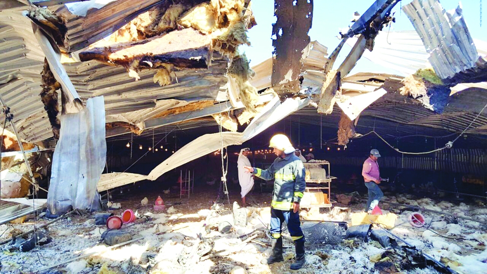 سوق في نجران تبدو عليه آثار الدمار بعد قصفه بمقذوفات حوثية. (أرشيف عكاظ)