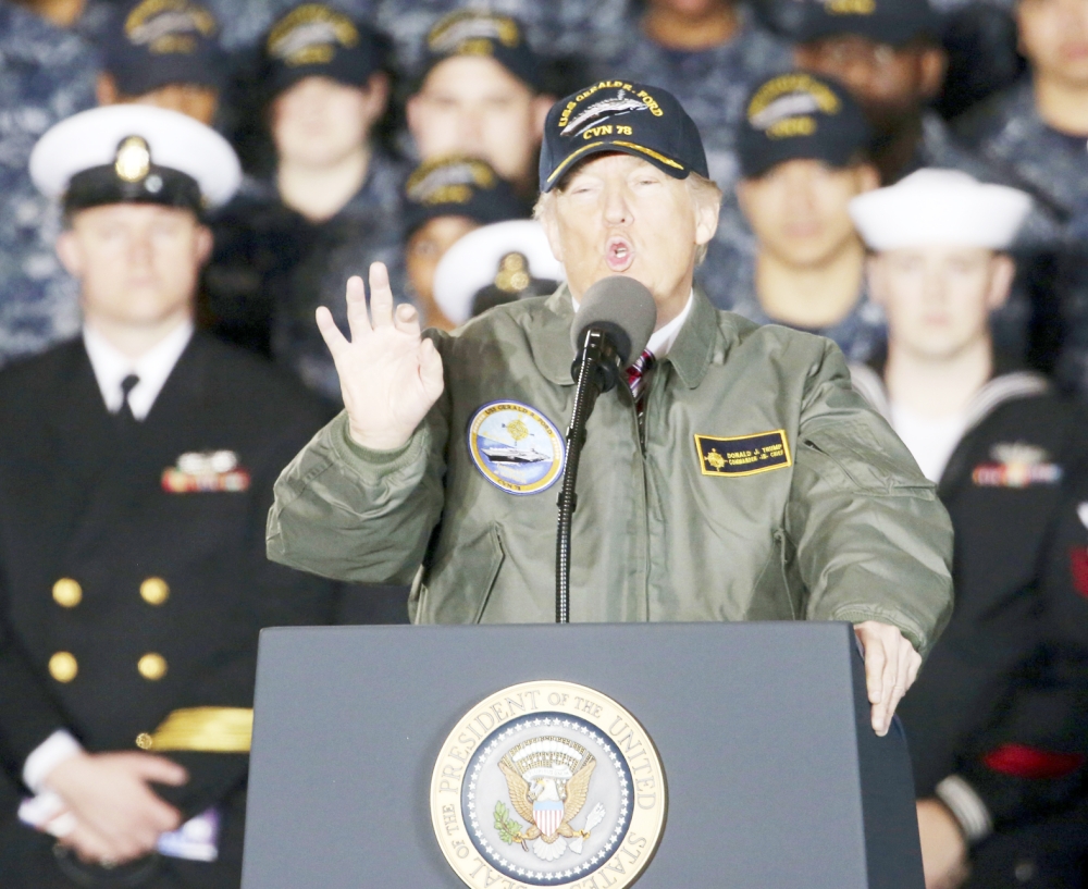 وقال خلال زيارة لحاملة الطائرات الجديدة «جيرالد فورد» أمس الأول: لقد تحدثت للتو مع مسؤولين في البحرية والقطاع للتباحث في خططي لإجراء عملية توسيع ضخمة لأسطولنا العسكري بما في ذلك حاملة الطائرات الثانية عشرة التي نحتاج إليها».