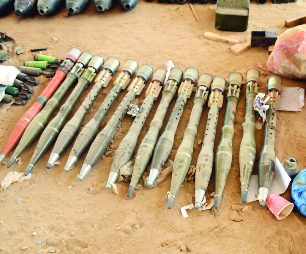 قذائف هاون تابعة لـ«القاعدة» عثر عليها الجيش الوطني في مخازن بحضرموت أمس. (سبأ)