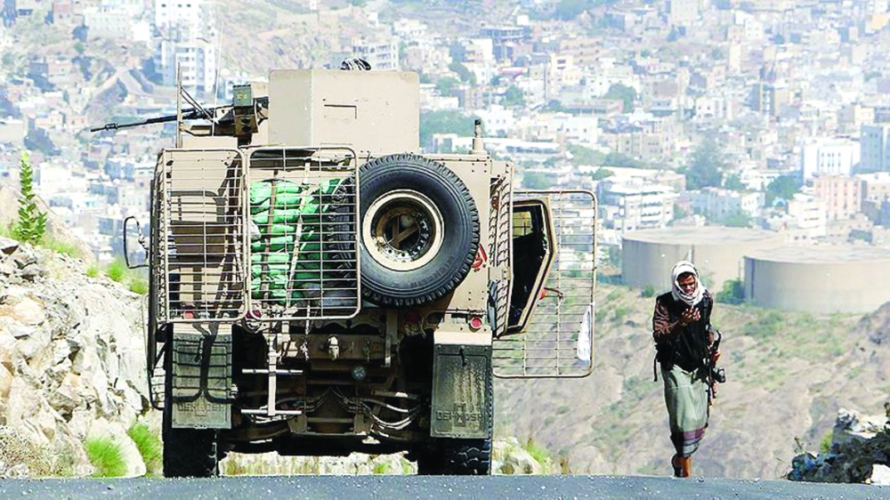 آلية عسكرية لقوات التحالف في أحد المواقع المطلة على تعز. (الأناضول)