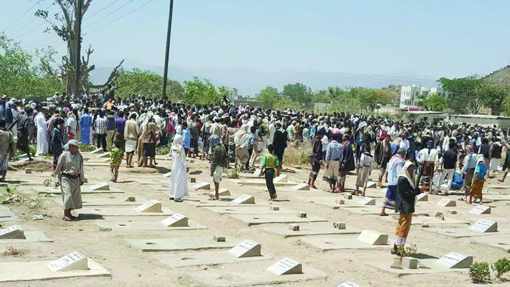 مراسم تشييع شهداء الجيش اليمني أمس. (موقع مقاومة تعز)