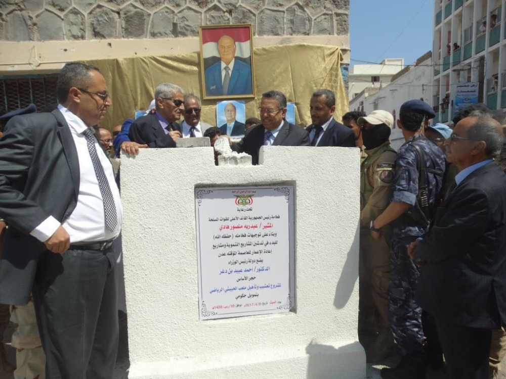 وضع رئيس الحكومة اليمنية أحمد عبيد بن دغر اليوم حجر الأساس لعدة مشروعات في العاصمة المؤقتة عدن ضمن مشروع الحكومة اليمنية لإعادة الإعمار وإصلاح ما خلفته الحرب في المناطق التي دمرتها مليشيا الحوثي وصالح الانقلابية.