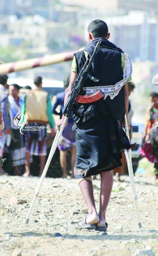مصاب من الجيش اليمني يحمل سلاحه في تعز. (تصوير: أحمد الباشا)