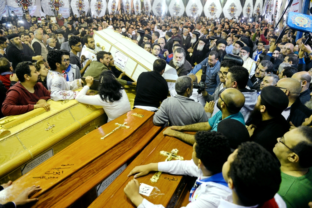 كشفت معلومات أولية أن منفذي تفجيري كنيستي طنطا والإسكندرية أمس الأول هما أبو إسحاق وأبو البراء، وأفادت المعلومات أن المتهم الأول هو «أبو إسحاق المصري»، وهو مسؤول عن استهداف كنيسة الإسكندرية. وهو من مواليد عام 1990 في منيا القمح بالشرقية، حاصل على بكالوريوس تجارة وعمل محاسباً بالكويت أربعة شهور، وسافر إلى تركيا وسورية عام 2013 ثم عاد إلى سيناء. أما المسؤول عن تفجير كنيسة مار جرجس في طنطا فهو «أبو البراء المصري»، من مواليد محافظة كفر الشيخ عام 1974، حاصل على دبلوم صنايع، وسبق أن دخل إلى سورية في عام 2013، كما سافر إلى لبنان وعاد مجددا إلى سورية. وتبنى «داعش» التفجيرين، وأعلن أن اثنين من أفراده نفذا تفجيري الكنيستين بسترتين ناسفتين، وحذر المسيحيين من مزيد من الهجمات. من جهة أخرى، بدأ فرض الطوارئ في مصر أمس (الإثنين) بعد أن وافقت الحكومة المصرية على قرار الرئيس عبدالفتاح السيسي، إعلان الطوارئ في البلاد لمدة ثلاثة أشهر اعتباراً من يوم أمس، فيما أجل مجلس النواب مناقشة قرار فرض حالة الطوارئ والتصويت عليه إلى اليوم الثلاثاء.