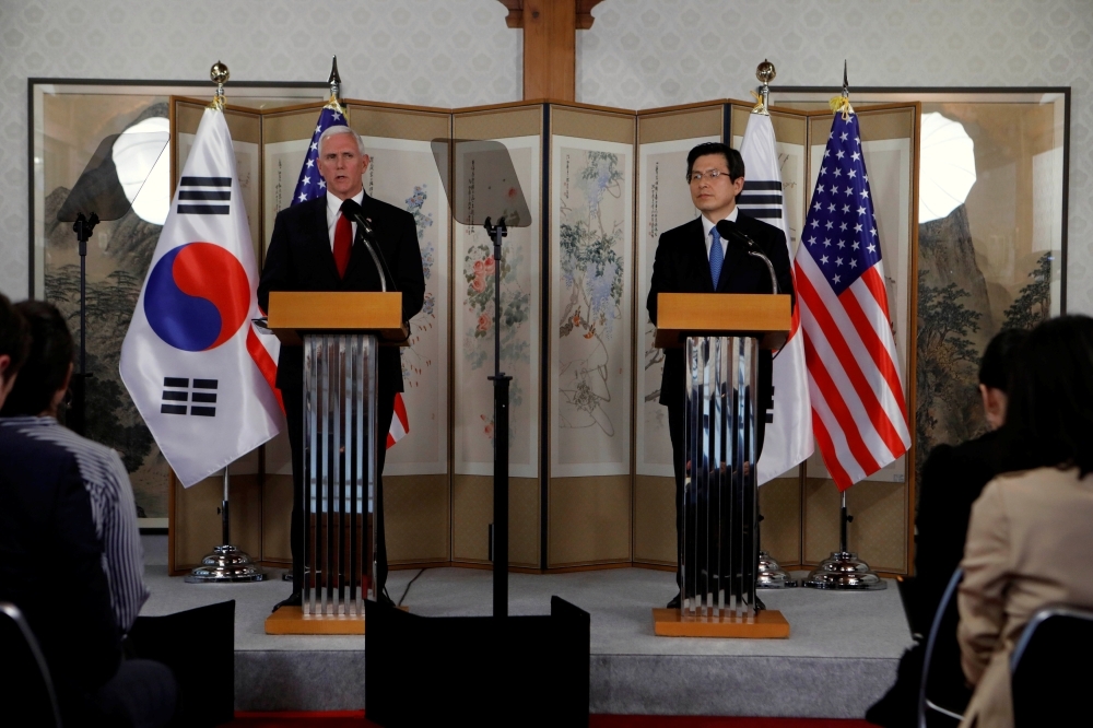 وقال بنس في قرية بانمونجوم الحدودية حيث تم توقيع اتفاق وقف إطلاق النار في 1953، إن واشنطن تريد تحقيق الأمن "من خلال وسائل سلمية عبر التفاوض. لكن كل الخيارات مطروحة على الطاولة، ونبقى إلى جانب الكوريين الجنوبيين".