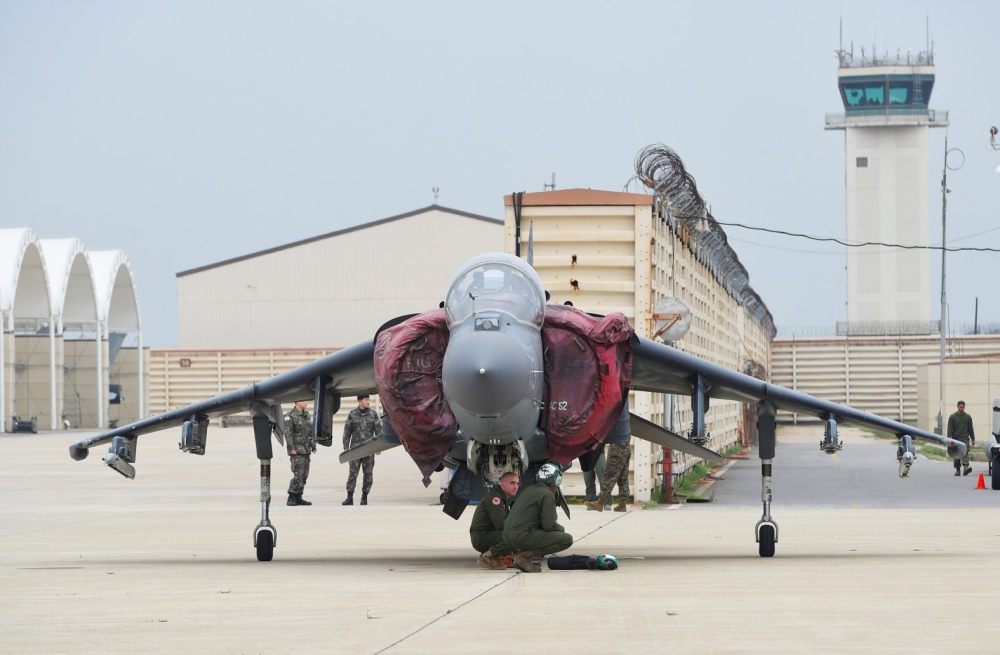 طائرة أمريكية في إحدى القواعد العسكرية في كوريا الجنوبية. (أ. ف. ب)