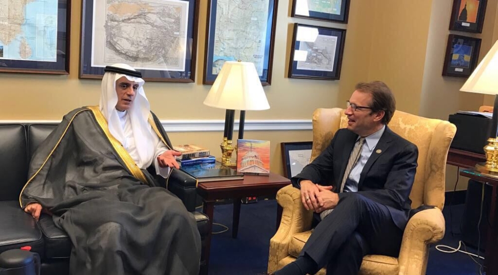 كما التقى الوزير الجبير أيضاً، رئيس لجنة الشؤون الخارجية النائب إد رويس، ونائبه إلييت آنجل، ورؤساء ونواب رؤساء اللجان الفرعية التابعة للجنة الشؤون الخارجية بمجلس النواب.