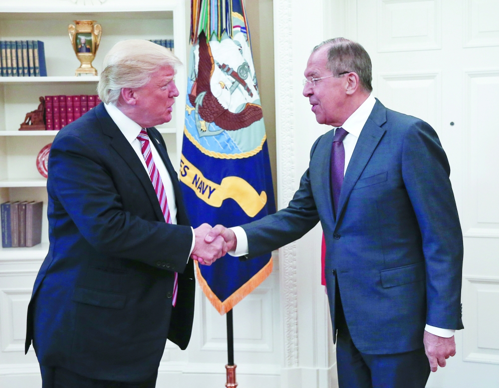 ترمب مستقبلا لافروف في البيت الأبيض أمس. (أ ب)