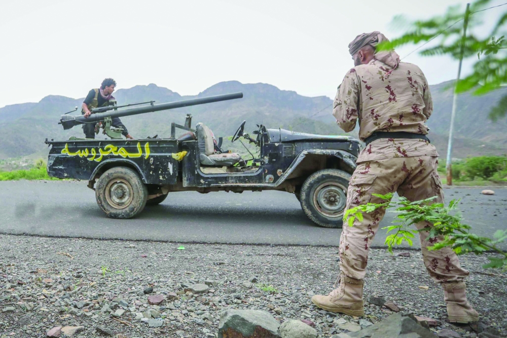 أفراد من المقاومة الشعبية أثناء المواجهات في تعز. (متداول)