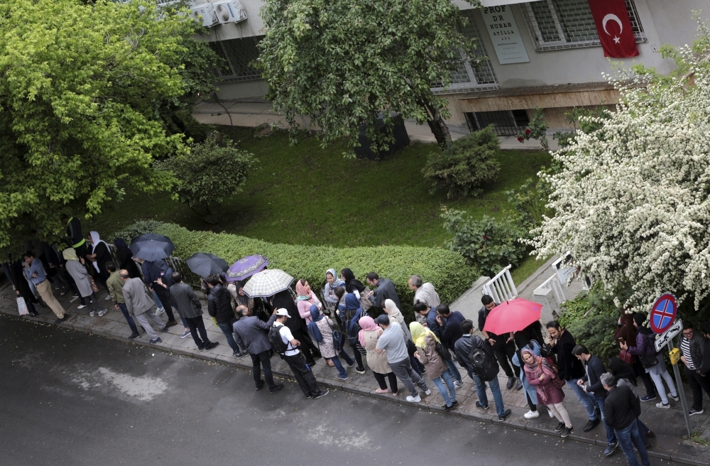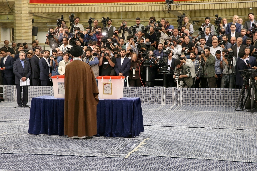 وضع المرشد الإيراني الورقة التي تحمل اسم الفائز في الانتخابات الرئاسية في صندوق الاقتراع خلال إدلائه بصوته على الرغم من وقوف آلاف الإيرانيين أمام الصناديق اليوم لاختيار رئيسهم .