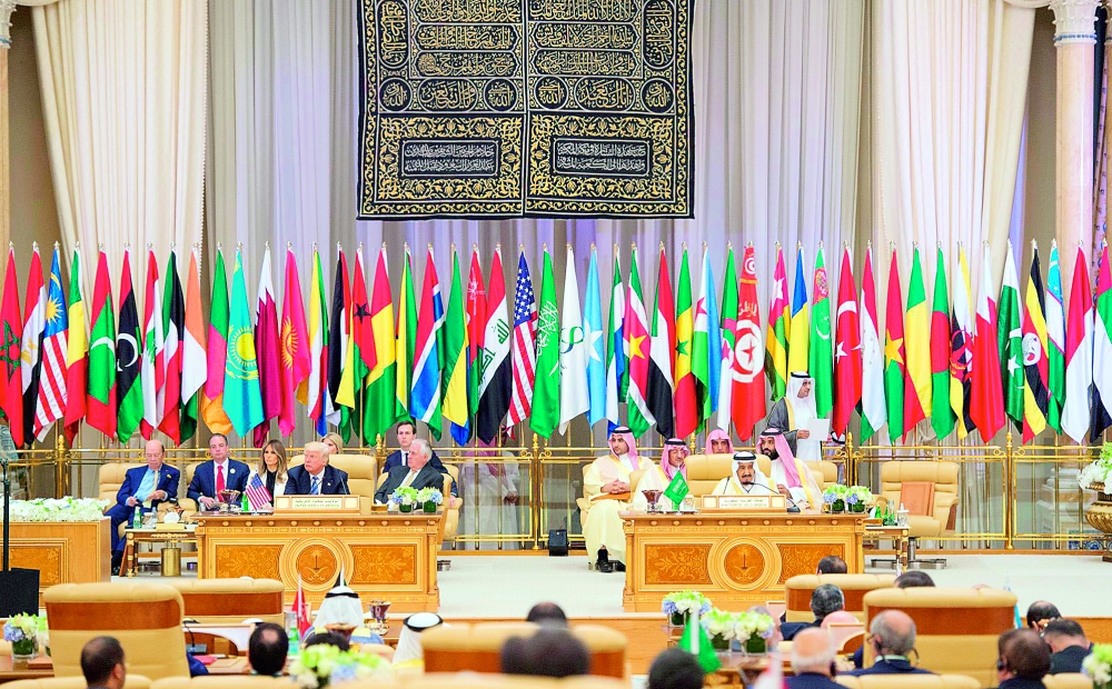خادم الحرمين الشريفين والرئيس ترمب في القمة العربية الإسلامية الأمريكية التي عقدت في الرياض أخيرا. (واس)