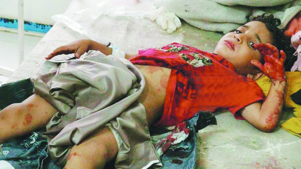 طفل يمني يتلقى العلاج جراء إصابته بقذائف الميليشيات. (متداولة)