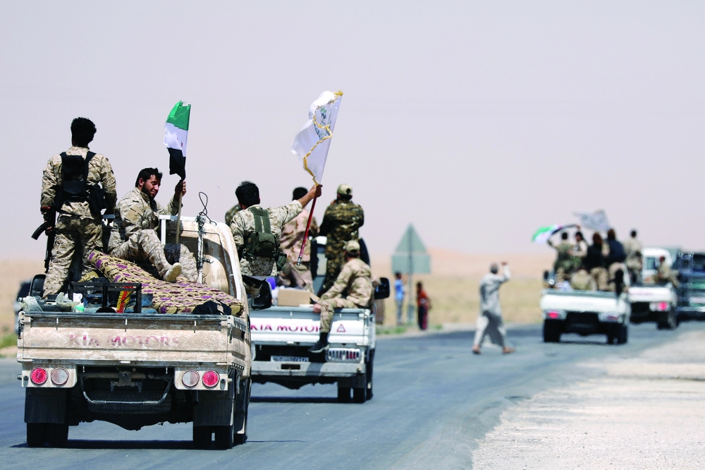 حشود من قوات سورية الديموقراطية تتجه إلى الرقة لقتال داعش. (رويترز)