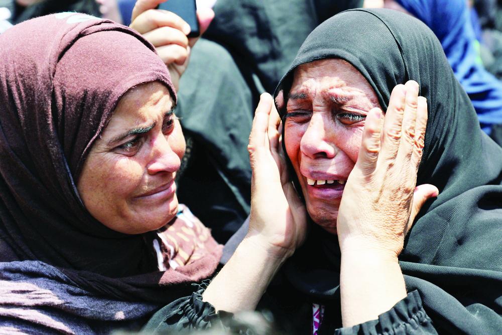 سيدتان مصريتان تبكيان أمس أثناء تشييع أحد ضحايا العملية الإرهابية في سيناء. (رويترز)