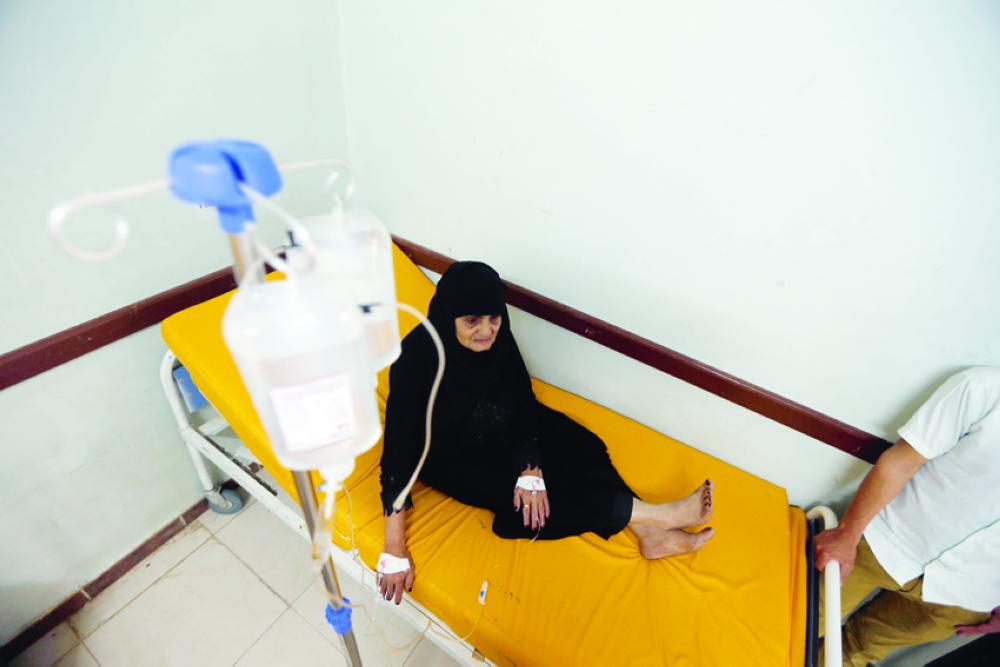 مسنة يمنية مصابة بالكوليرا تتلقى العلاج في أحد مستشفيات صنعاء، بينما حول الحوثيون البلاد إلى وباء. (أ. ف. ب)