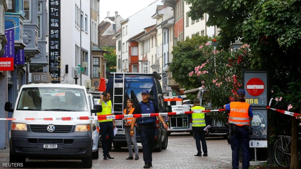 ووصفته الشرطة في بيان ناشدت فيه مساعدة المواطنين بأنه أصلع وأشعث ويصل طوله إلى نحو 190 سنتيمترا. ووقع الهجوم داخل مبنى إداري بحي تجاري في وسط شافهاوزن وهي بلدة ترجع إلى العصور الوسطى يقطنها 36 ألف شخص على الحدود الألمانية.