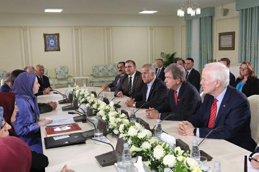 وقدّمت رجوي في اللقاء شكرها لأعضاء مجلس الشيوخ الأمريكي على مواقفهم الصارمة حيال النظام الإيراني خصوصا تبنيهم عملية إدراج قوات حرس نظام ولاية الفقيه في قائمة الإرهاب، والمصادقة على القرار الجديد لمقاطعة قوات الحرس وزعماء نظام الملالي بسبب انتهاك حقوق الإنسان والمشاريع الصاروخية وتصدير الإرهاب.