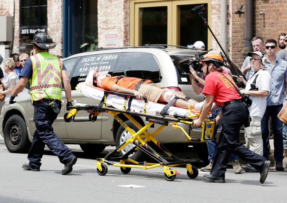 وقالت ميريام ديكلر المتحدثة باسم مدينة تشارلوتسفيل في رسالة نصية، إن الحادثة شملت ثلاث مركبات وإن إصابات عديدة وقعت، فيما ذكر شهود أن أربعة مصابين شوهدوا في موقع الحادثة، وإن المسعفين نقلوا أحدهم. ووصلت عدة سيارات إسعاف إلى موقع الحادثة بعد فترة وجيزة من وقوعها.